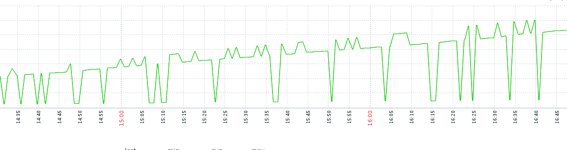This, I think it should to pin the stats socket with the 3 processes, because of this may be the graph shows these behavior.